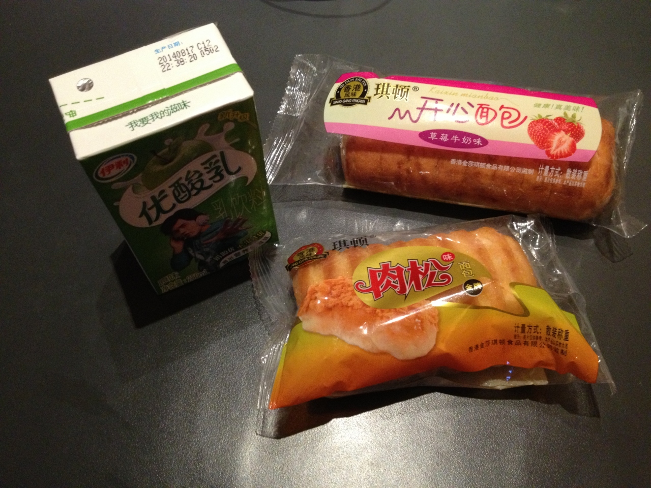 がっかりしたのは、予約サイトに朝食付きとあったのですが、ホテル内どこにもレストランはないので、ロビーで明朝の朝食会場はどこか尋ねたら、これが朝食だと賞味期限が半年もある菓子パンを二つ渡されただけでした…。