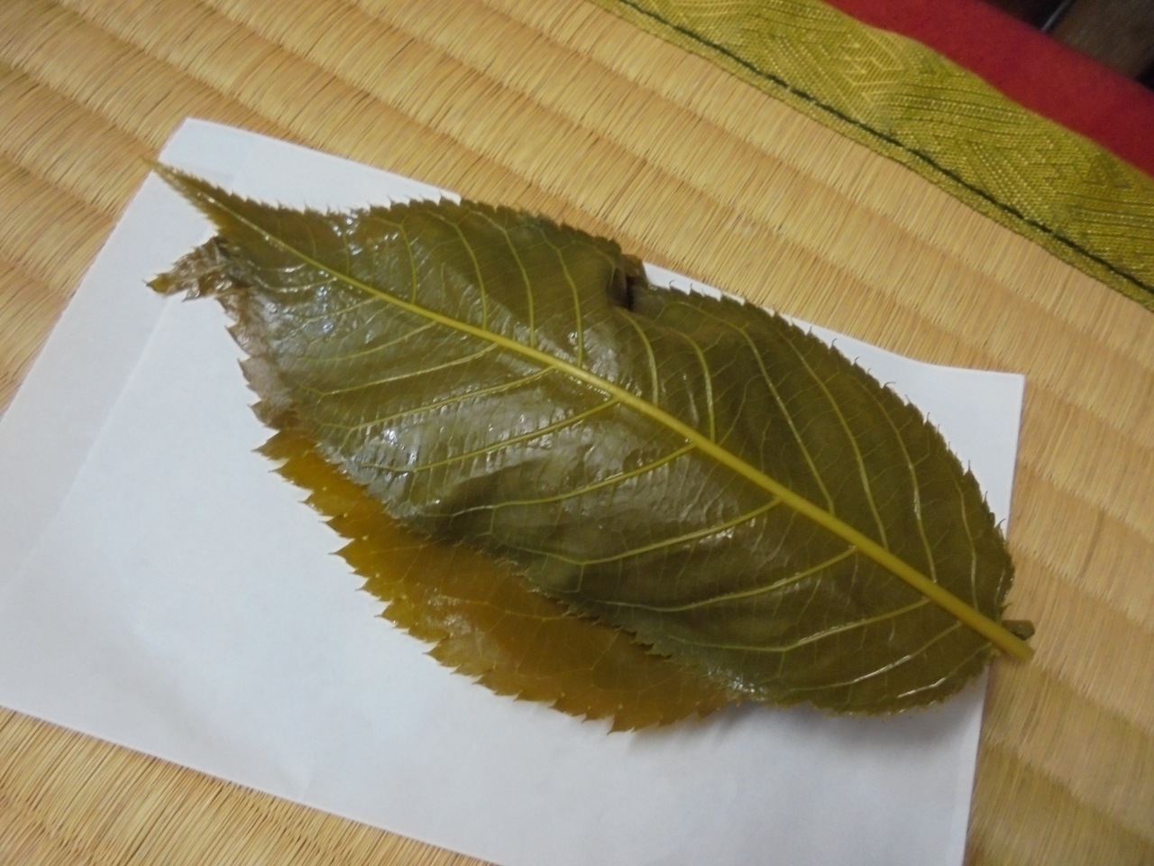 こちらではクーポンで名物櫻もちを頂けます。2枚の桜の葉で上下からもちをはさんでいるのが特徴。白色のもちは自然な甘さで塩味の効いたさくらの葉とよく合っていました。