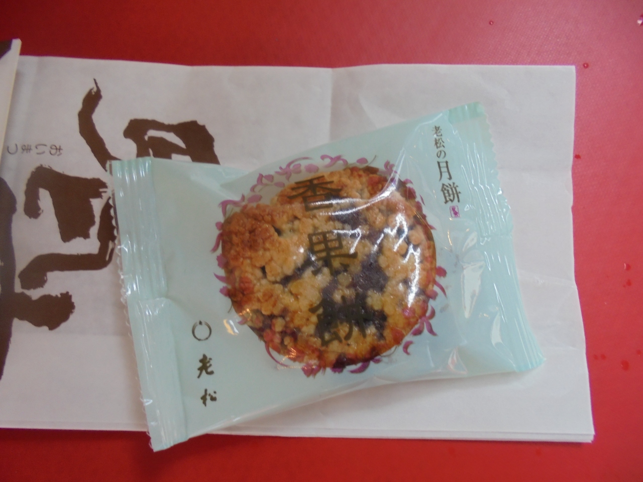 こちらではクーポンで月餅を頂けます。香果餅と言われる京風の月餅は中国の月餅とは姿・形が異なり柔らかな食感、ドライフルーツが混ざったフルーティな味わいでした。