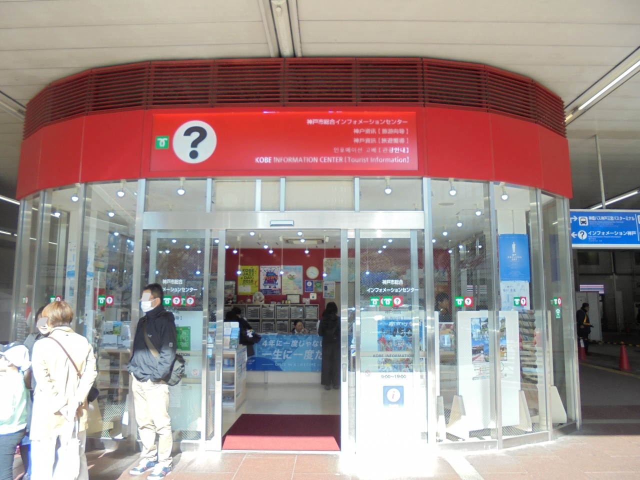 JR三ノ宮駅の構内にあり、建物上部の赤色が目立つ神戸市総合インフォメーションセンター。観光案内や観光マップの種類が多く情報収集には非常に便利です。