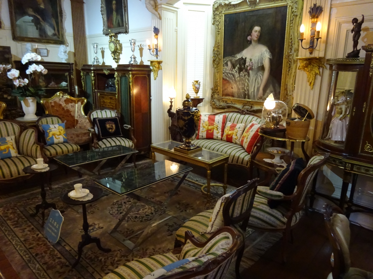 建物内の各部屋には18~19世紀の家具・調度品・美術品が所狭しと並べられています。また地下室にはロダンの彫刻や2000カラット以上あるというトパーズも間近で見ることができます。プールのある中庭のテラスではカフェやランチも楽しめるとのこと。