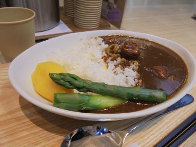 柔らかい豚肩ロースが使われた「びえい豚トンテキプレート」、ピリッとした辛さの「びえい豚カレー」とも十分満足できる内容。いずれもほくほくのじゃがいも、新鮮なアスパラガスが添えられ、とうきびが混ざったライスなど北海道の食を堪能しました。
