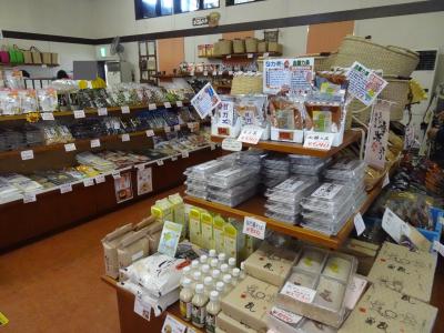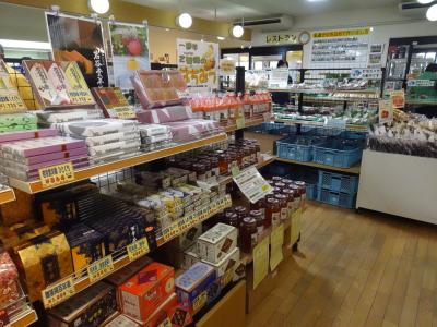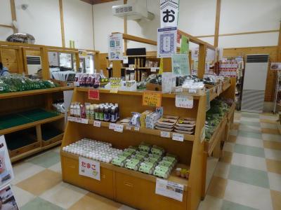 メイン施設の「自然薯の館」は素朴な雰囲気。物産館は広くないものの土産物やきのこ類等の農産品が並んでいました。