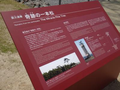 マツとしては大ぶりで、間近で見ると改めて高さを感じます。現在のマツはレプリカながら、設置された解説板によれば東日本大震災当時の樹齢が173年とのこと。それ以前の度重なる津波にも耐えてきたことが分かります。