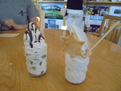 道の駅は地元の方の交流の場にもなっているようで、駐車場も道の駅の中も賑やか。ソフトクリームを食べるのに少し並びました。- 旅行時期