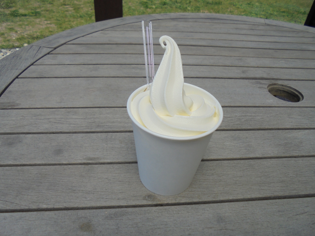 ここではヨーグルト入りのソフトクリームをチョイス。乳製品メーカーの工場に併設された販売所だけに新鮮さを感じました。八ヶ岳が正面に見え高原らしさも満喫できます。