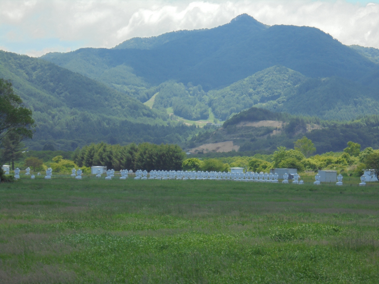 ただ6台のミリ波干渉計や電波ヘリオグラフが立ち並ぶ光景はなかなか壮観なものがあります。また奥にある電波望遠鏡の直径は45メートルあるとのことで、近くにあるようで容易には到着しないという距離感のずれを感じます。