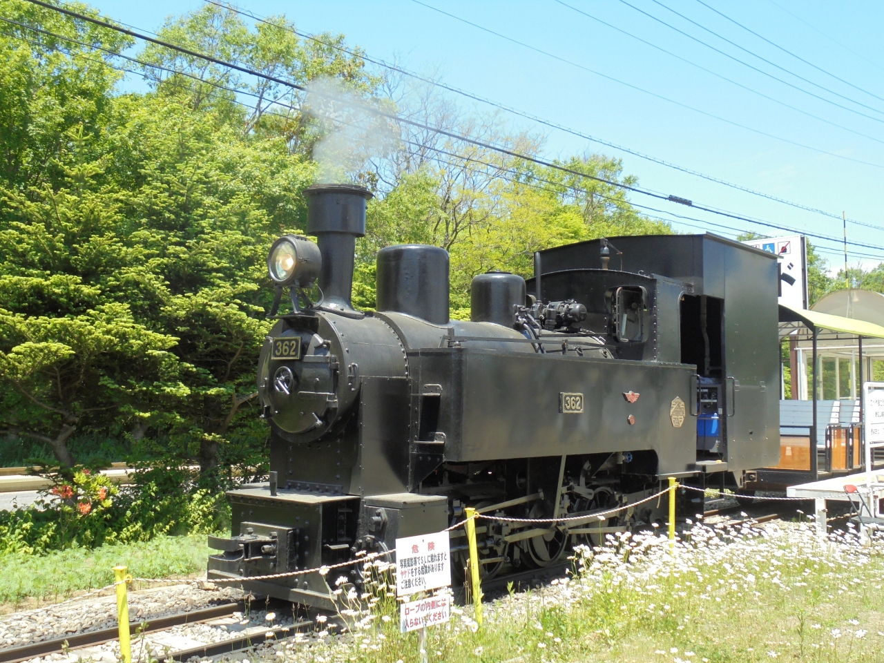 SLランドでは本物の蒸気機関車が牽引する客車に乗ることができます。SLは土日祝日、夏休み中心に運行されているとのこと(平日はディーゼル機関車牽引)で、30分毎に発車するダイヤです。(乗車券は大人310円、子ども210円)