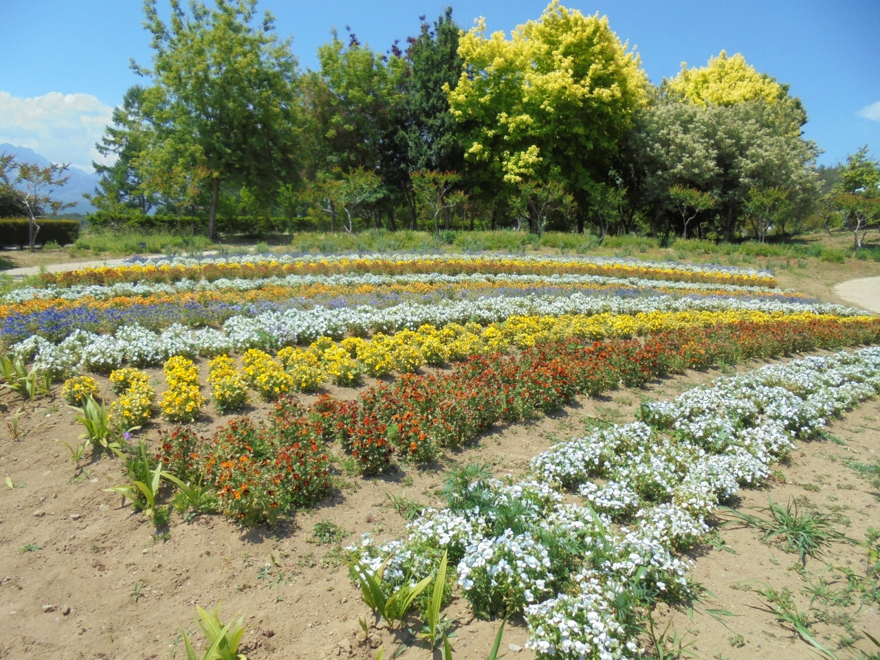 園内では季節の花々を見ながら散策を楽しみました。奥にある青空農園では果物や野菜などの収穫体験もできるようです。残念ながらさくらんぼ狩りには少し時期が早すぎました。