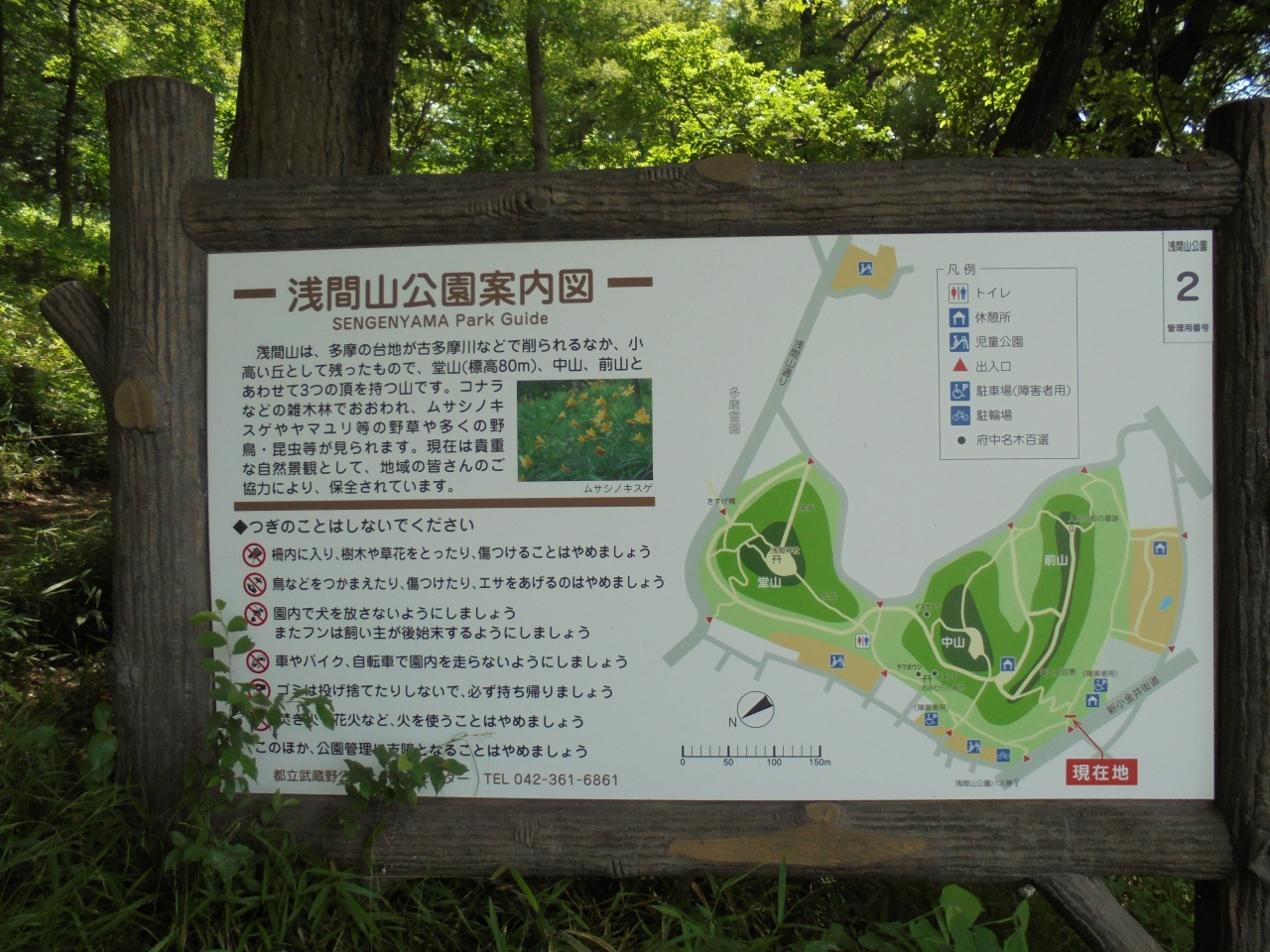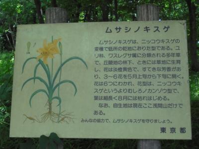 5月にはこの浅間山にしか自生しない「ムサシノキスゲ」の花を観察できます。また天気の良い日には公園の西側から富士山の姿を臨むこともできます。
