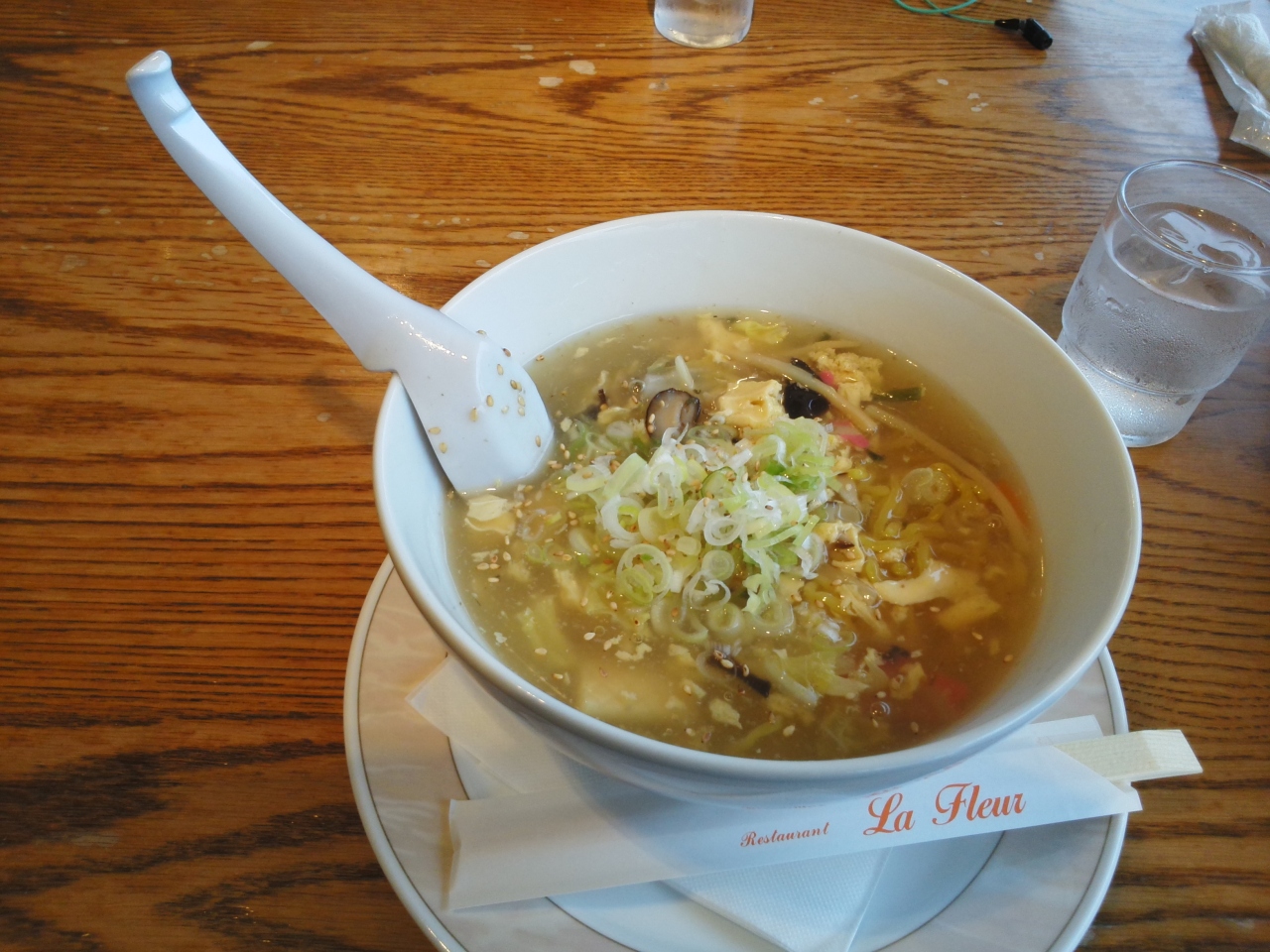 道の駅の2階にレストラン「ラ・フルール」があります。ここの名物が「ガタタン」、とろみのあるスープです。「ガタタン」が上にかかったラーメンやチャーハン、やきそば、うどんを食べることができます。
