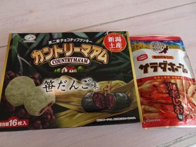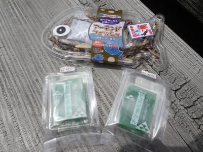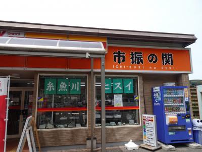 ドライブインの雰囲気のような施設にはコンビニ(ヤマザキショップ)と食事処があり、土産物などはコンビニ店内に並んでいます。規模は小さいながらもヒスイが販売されるコーナーも(糸魚川市は宝石質のヒスイの産地)。ヒスイは無理だったので、代りに「ヒスイ羊かん」を買いました。