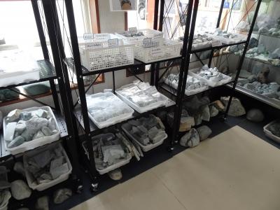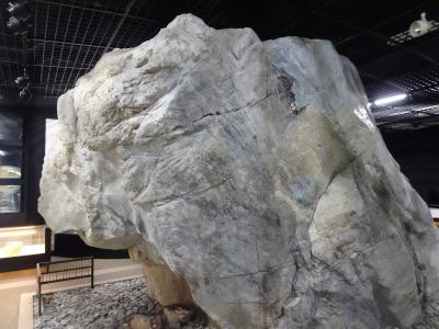 糸魚川市は宝石質のヒスイの産地ということでヒスイの加工品や原石の数々が展示、最大の見どころは館内中央に構えた世界最大のヒスイ原石(102トン)です。