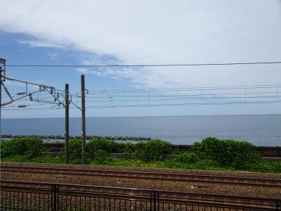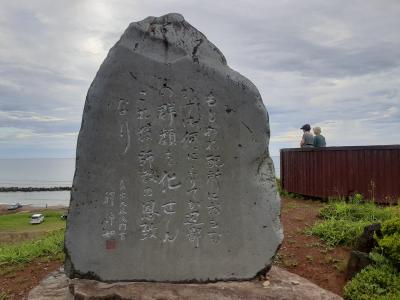 日本海が近く駐車場横には休憩所もありますが、海との間を線路が横切り眺望はいま一つでした。- 旅行時期