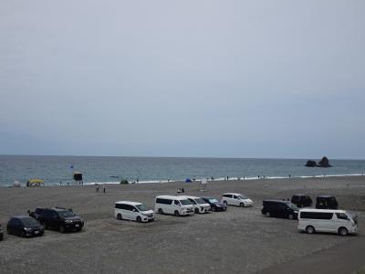当日は波がやや高く、海で遊ぶ人よりは砂浜を散策する人が多し。