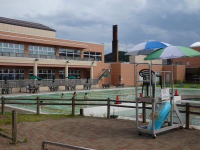 本格的な屋内・屋外プールのほか温泉ゆらら、さらにはホテルなど滞在型の施設が揃っています。土産類が豊富な売店内ではプールで使う水着やタオルなども販売されていました。
