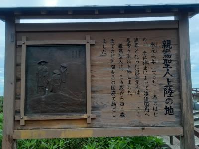念仏停止により越後国に流罪となった親鸞聖人が上陸したのがここ居多ヶ浜との説明板があります。