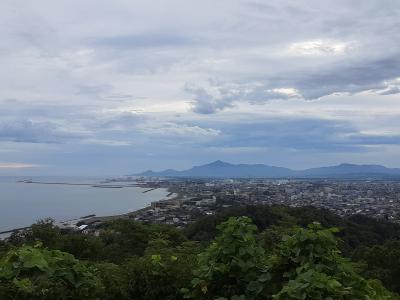周辺は公園のように整備され居多ヶ浜を見下ろせる展望台があります。早朝訪れたところ地元の方々のウォーキングコースとなっているのか、坂道を上ってくる年輩の方が多くいらっしゃいました。