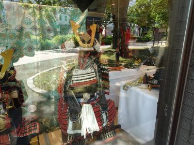 ショウウインドウには甲冑類が展示。お城をバックに甲冑姿を撮影してもらえる体験(現在は休止中)のほか乗馬や馬へのエサやりなど体験メニューがあるのが特徴。