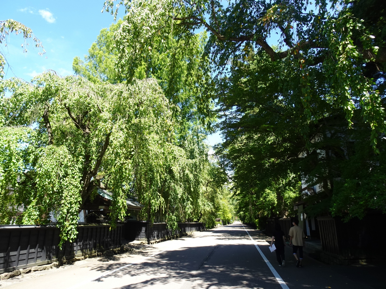 訪れたのは快晴の8月。内陸部の角館は厳しい残暑で、本来訪れる時期としては不向きかもしれませんが、しだれ桜の並木の下は涼やかな風が通り抜け心地よく感じられます。