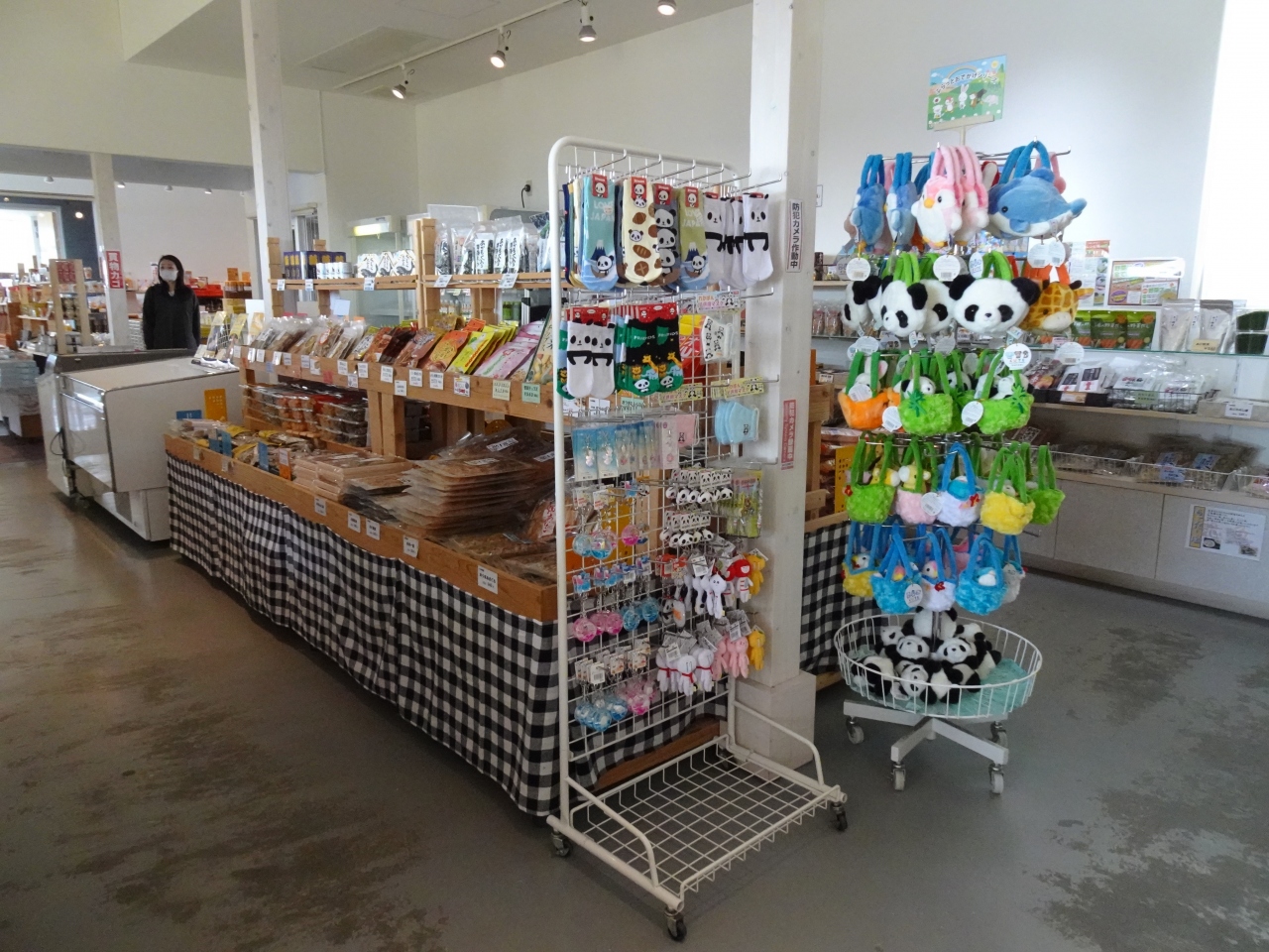 三角屋根のウッディーな建物内の売店は昔ながらのよろずやといった雰囲気。地元野菜や果物のほか銘菓や特産品も数は少ないながら並んでいます。他よりお買い得な商品も。