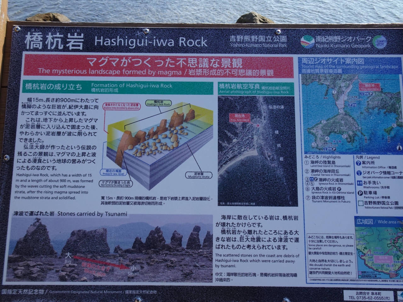 名前の通り、海に浮かぶ巨岩群「橋杭岩」が駐車場や展望デッキから間近に眺めることができロケーションは抜群。