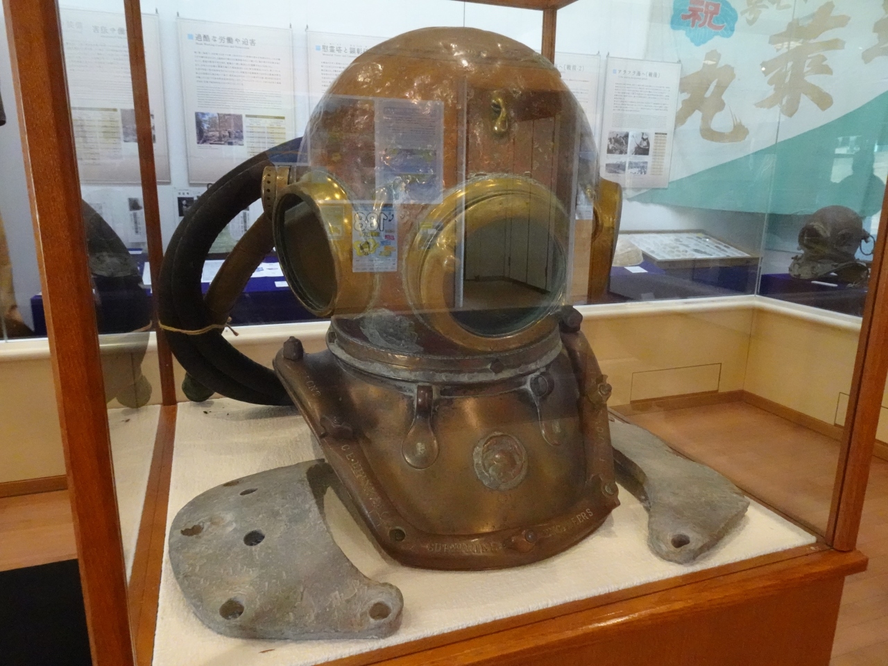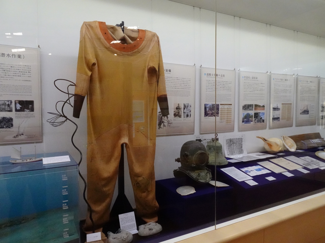 また施設内には小さな展示室があり、19世紀後半、串本からオーストラリアに真珠貝採取のため移民した人たちが使用した潜水具などが展示。串本町の歴史の一端を知ることができました