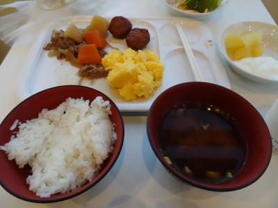 朝食のビュッフェメニューの種類は少なめながら無料なのでやむなし。