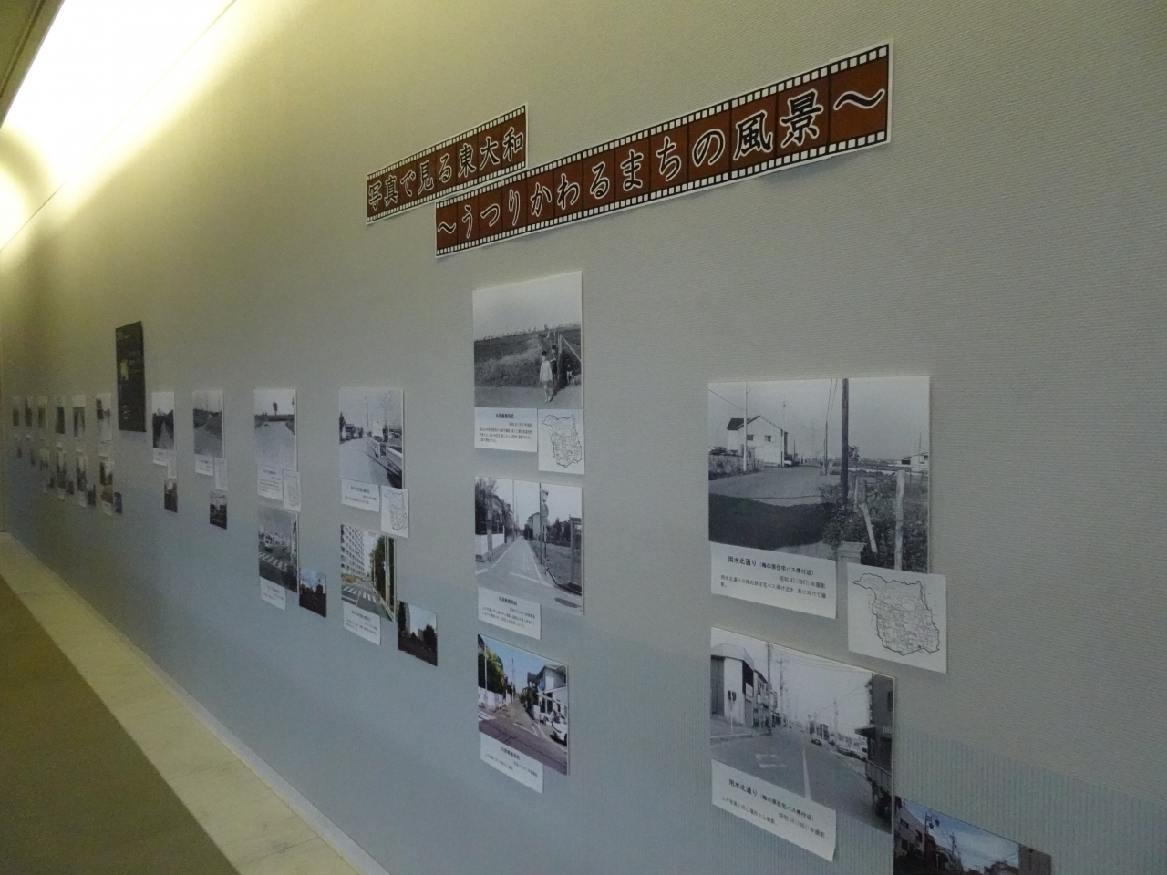 球形のユニークなプラネタリウム以外は入館無料です。常設展示室は2階にあり、狭山丘陵の地形模型、石器・土器の類から歴史順に生活用具が展示されるなど、郷土博物館によく見られる内容。廊下には市内の主なスポットの移り変わりを写真で示す展示があり、こちらは興味深く見学することができました。