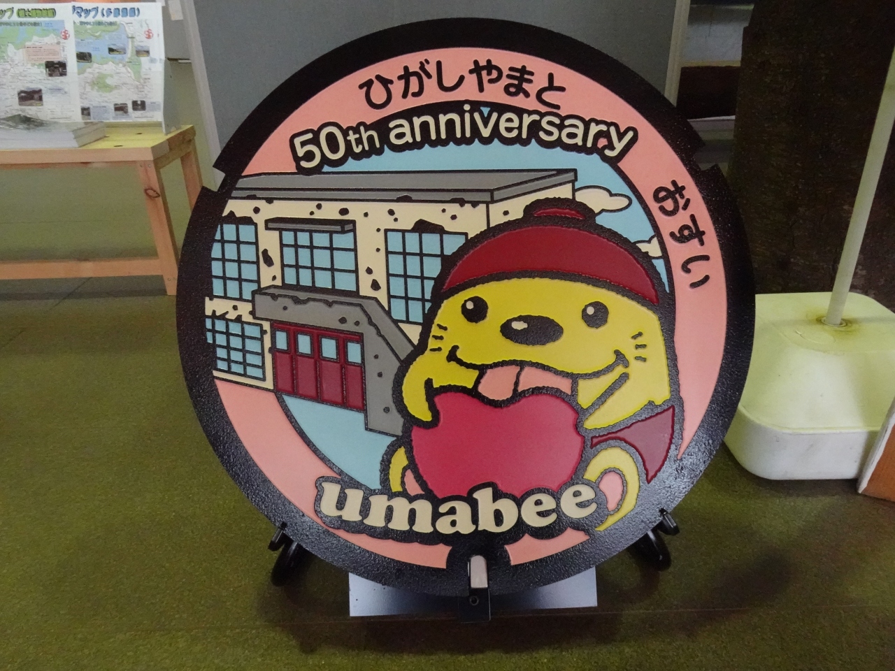 東大和市の観光キャラクター「うまべぇ」と戦争遺跡「旧日立航空機株式会社変電所」が描かれた東京都のマンホールカード特別版が受付で配布されています。- 旅行時期