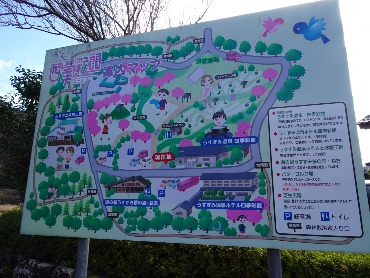 最も気になったのは、県道から施設までの途中に架かる橋が車1台分の幅しかないこと。車でのアクセスを前提としている割には危険な構造で解せません。- 旅行時期