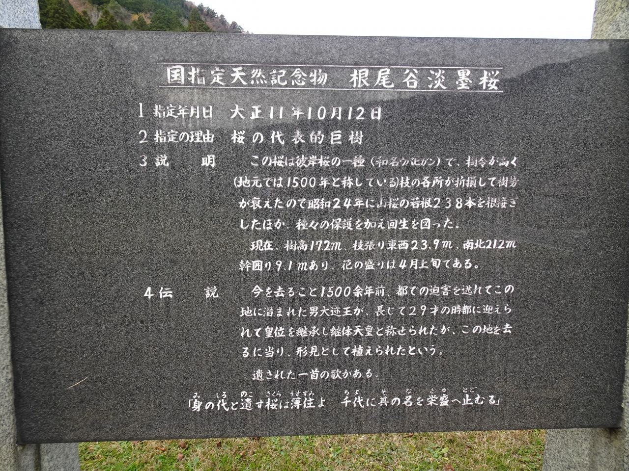 山梨県「山高神代桜」と福島県「三春滝桜」と並び日本三大桜にされているということで、近くの道の駅「うすずみ桜の里 ねお」を訪れた際に立寄り。