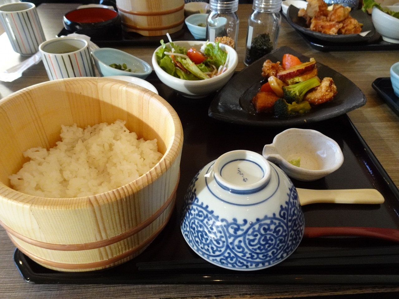 海鮮のメニューが主体ながら肉料理もあり。ご飯がおひつに入り、茶碗としゃもじが付いてきます。店内の「おだしバー」から白だしをかけて茶漬けとして食べられるのがユニーク。味やボリュームは価格相当かと(1000円台の価格帯が中心)。