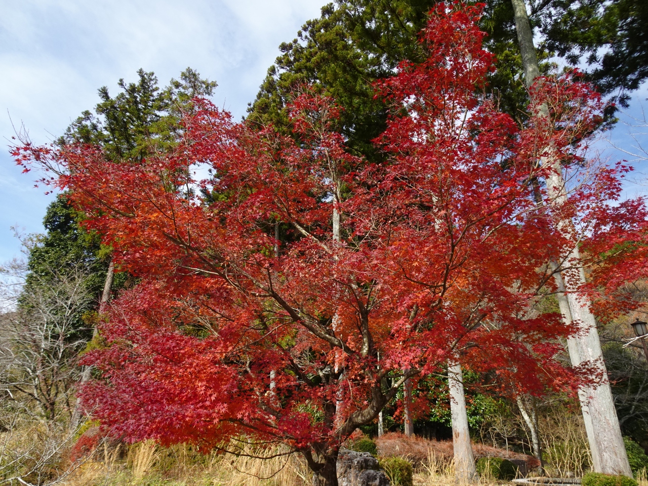 駐車場に隣接して緑地公園があり周辺を散策。12月中旬でも、きれいな紅葉を見ることができました。- 旅行時期