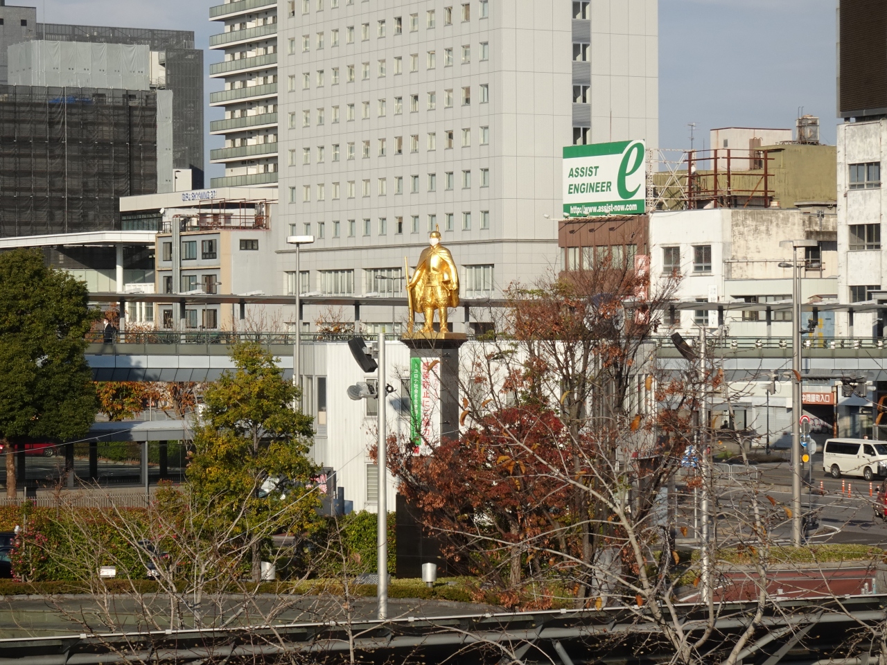 - 黄金の信長像や丸窓電車が見えます