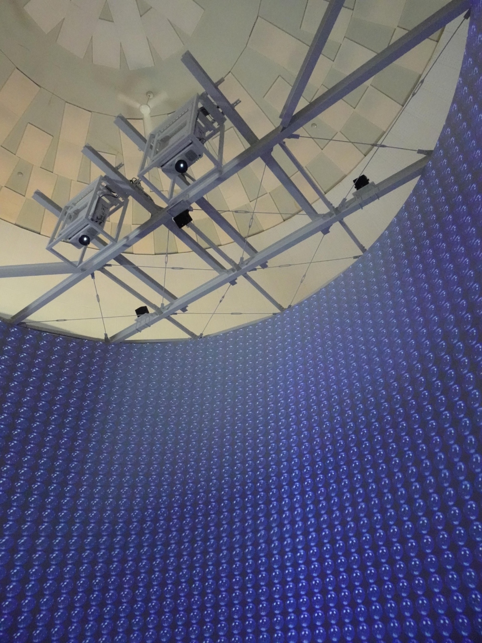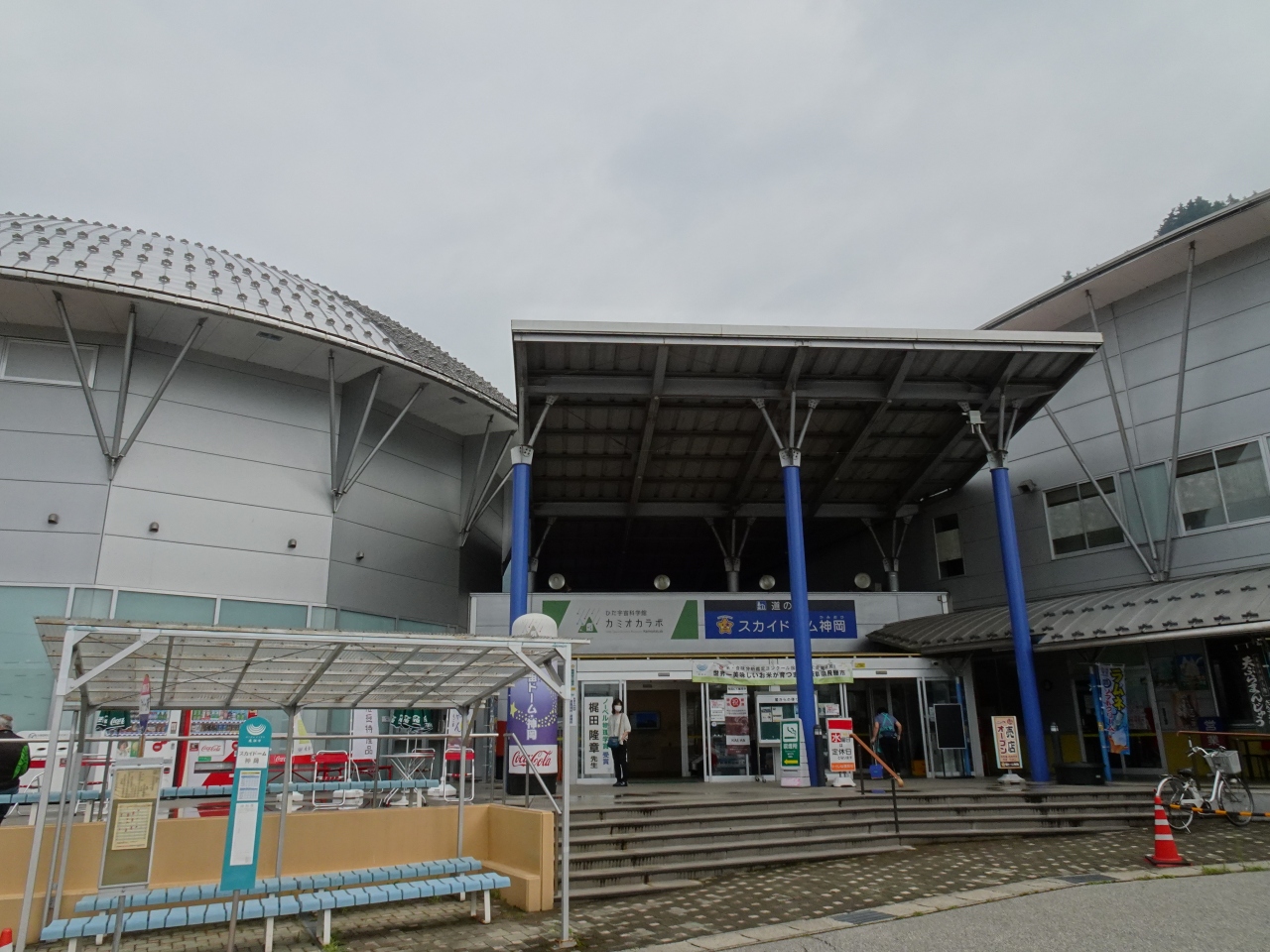 スカイドームの駅名の通り、施設内にはドーム型の「ひだ宇宙科学館 カミオカラボ」があるのが特徴。世界最大の地下ニュートリノ観測装置「スーパーカミオカンデ」を紹介したミュージアムです。素粒子のことなどを真剣に理解しようとすると難しい内容ですが、迫力あるスクリーン動画やゲームの要素を入れたコーナーなど親しみやすい展示もあり、また入場無料ということから気軽に立ち寄れます。