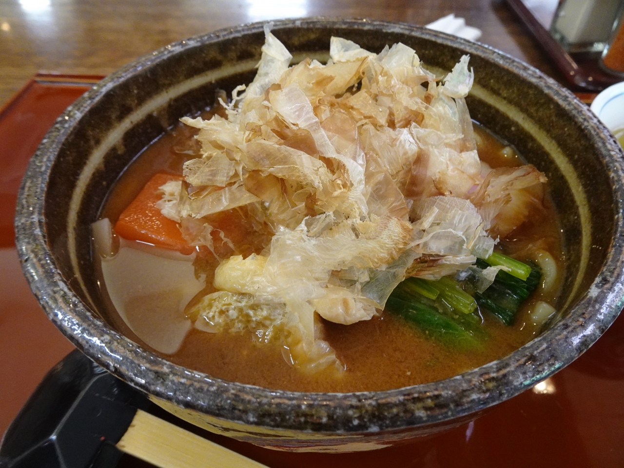 駅内のレストランには「縄文うどん」なる名物も。作り置きしているようで注文後すぐに料理が出てきましたが、味噌味の汁にかつおぶしがマッチしてなかなかの美味。あまり温めすぎず真夏でも食べやすく満足できました。