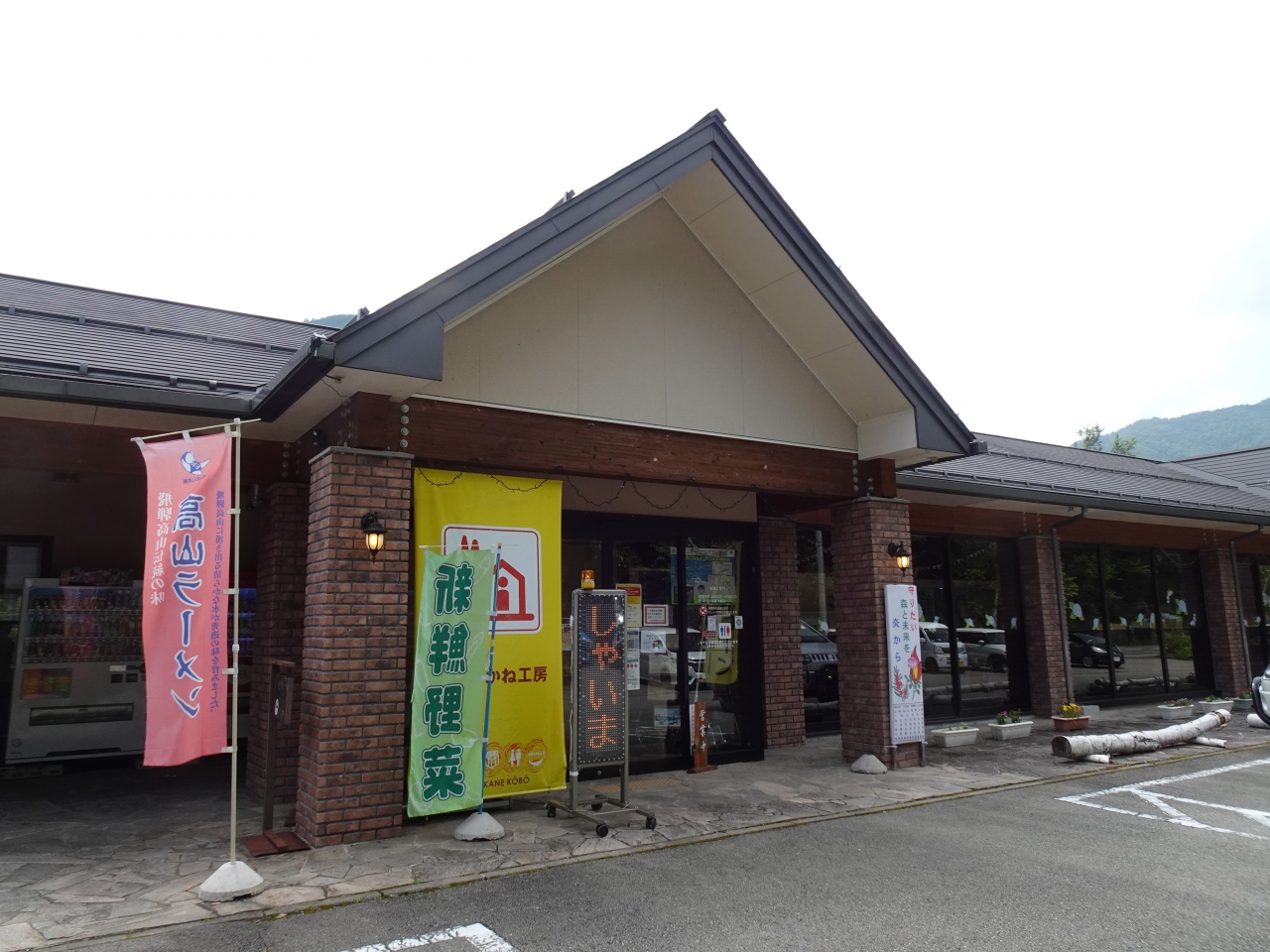 周辺の道の駅の中でも規模は大きく、野菜直売所に売店、食堂など施設も充実。飛騨牛が売りでレストランの定食類のほか、コロッケや牛串焼き、牛たこ焼きなど手軽に食べられるメニューも。