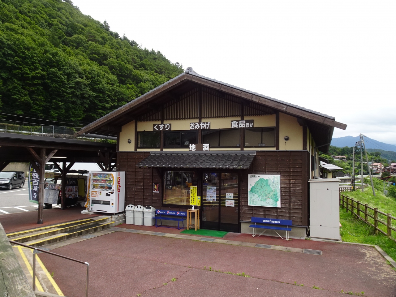 道の駅「大桑」からは約20キロ、北東側の道の駅「日義木曽駒高原」までは約10キロと、施設が比較的充実した駅間に位置し、売店の商品等も特徴のあるものは少ないように思われました。食事処のメニューも観光地値段といった印象。