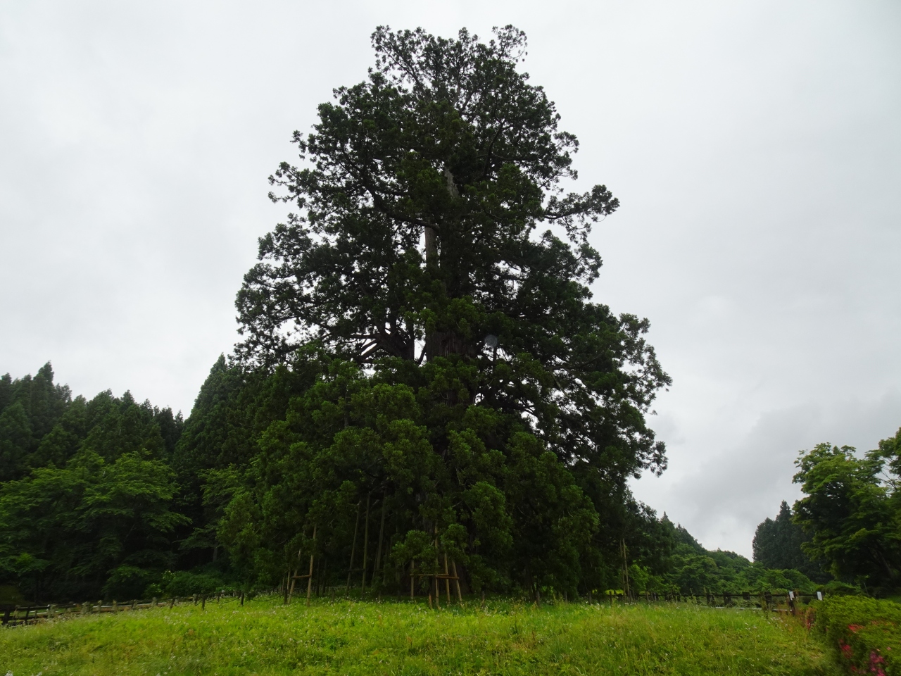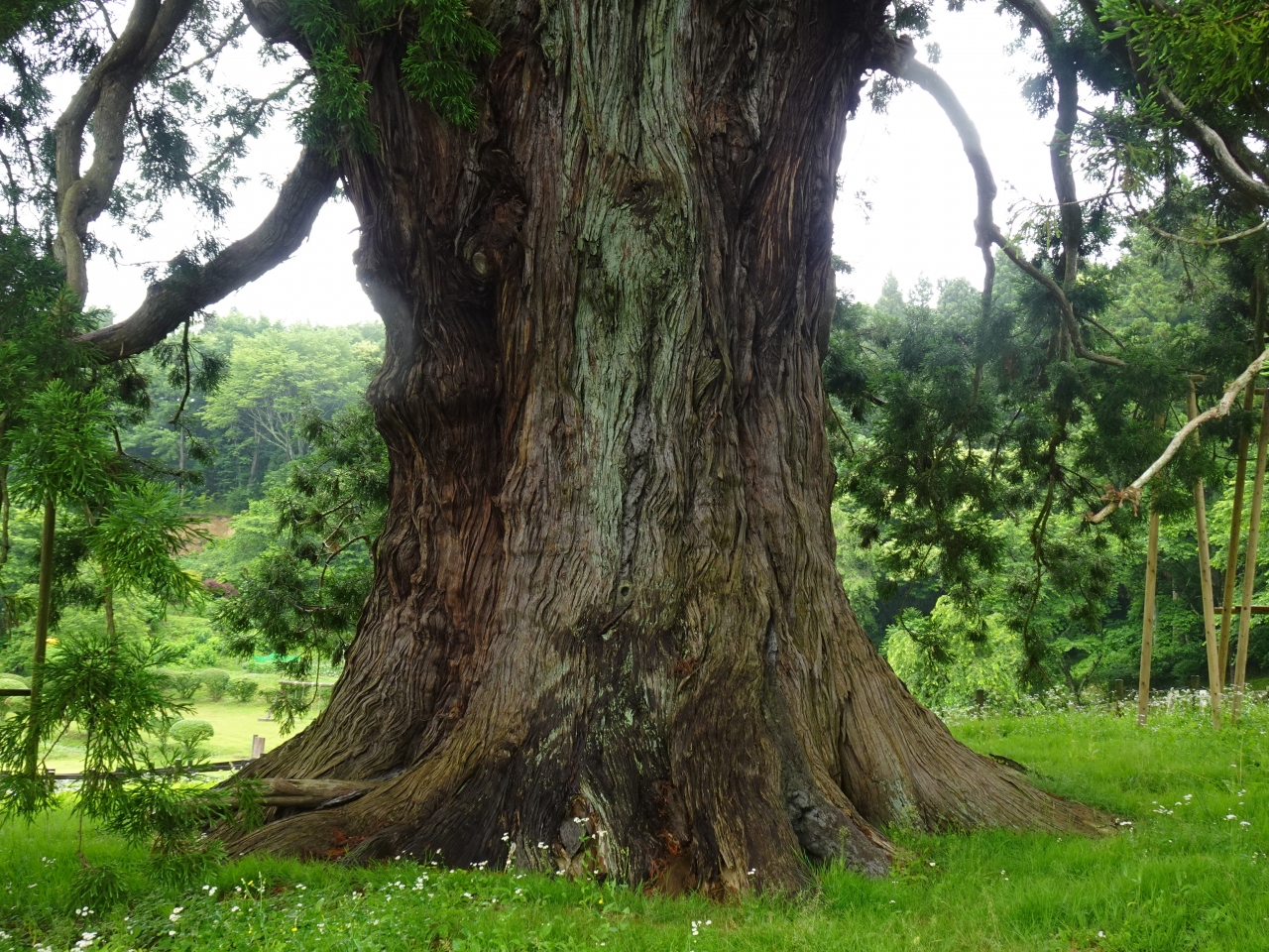 現地の解説によれば、推定樹齢600年、高さ50メートル、根元の周囲は22メートル以上とあり、実際どの部分を見ても非常に立派な名木です。