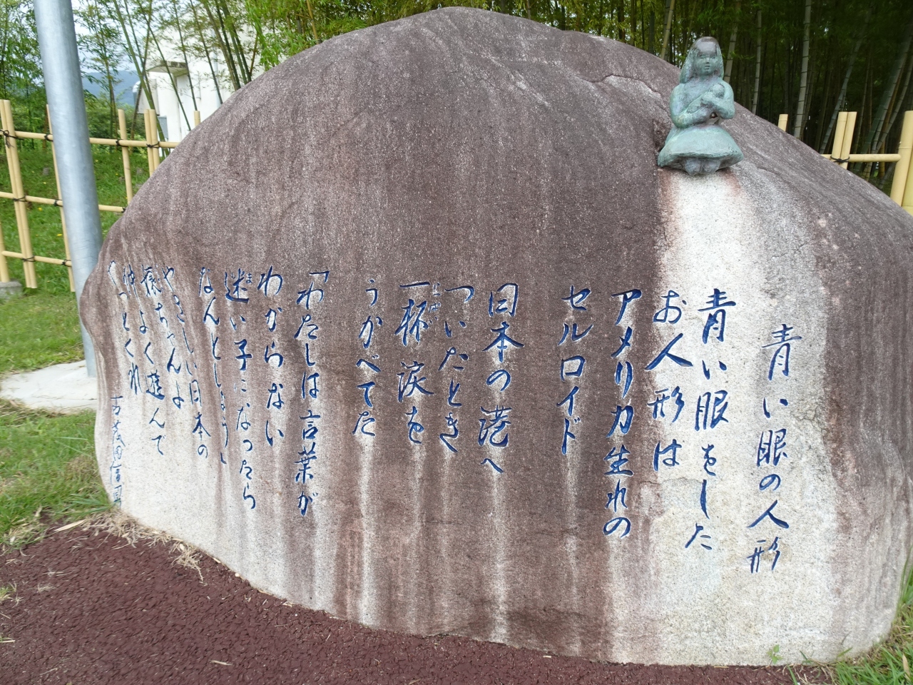 手作り感満載の解説板が置かれているほか、無人ながら記念のスタンプまで設置されていました。