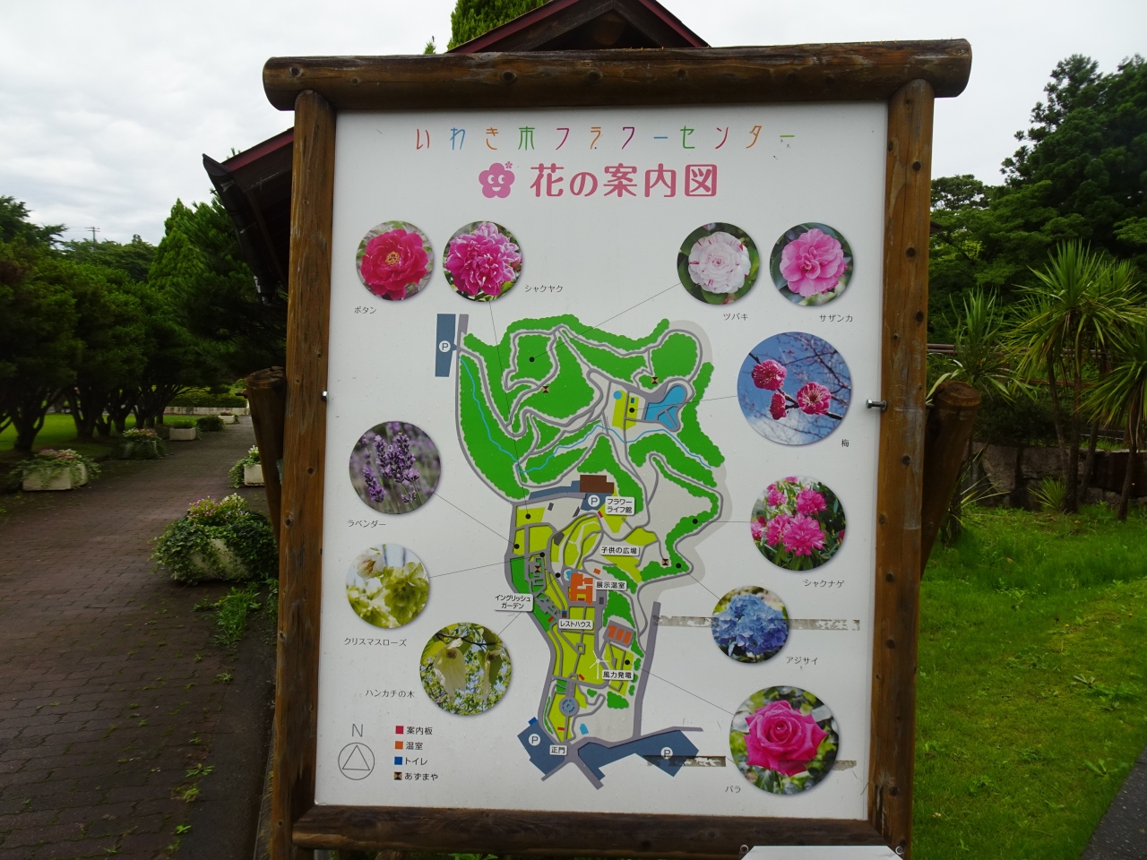 入園無料のため正門の窓口は無人。見ごろの花を示したコピー紙のマップが置いてありました。正門から入ると急な階段が現れますが、迂回するようにスロープも設けられています。