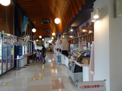 下り線側は2013年のオープンと比較的新しく施設は全体としてきれいです。駐車台数は上り線に比べやや少ないものの、土産店に農産品、食堂、喫茶、ベーカリーさらには24時間営業のコンビニ(ファミマ)とフルラインナップ。高速道路のサービスエリアさながらで長距離トラックも多く利用していました。