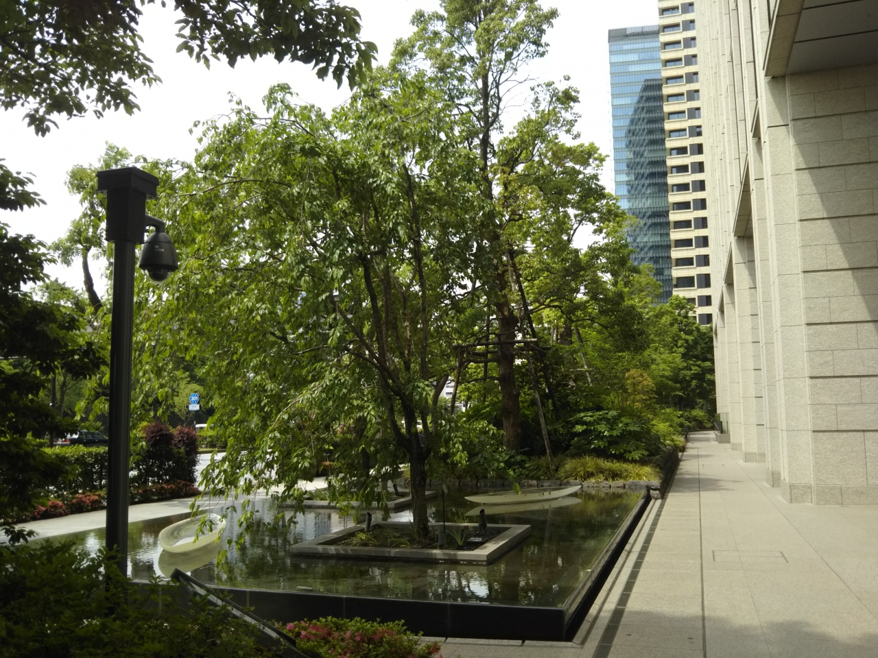 現在も大手町タワー・JXビルの前には水と緑に囲まれた「ホトリア広場」が設けられています。平日の昼間はビジネスパーソンで賑わう大手町もこの辺りまで来ると人通りは少なく、のんびりできるスポットです。- 旅行時期