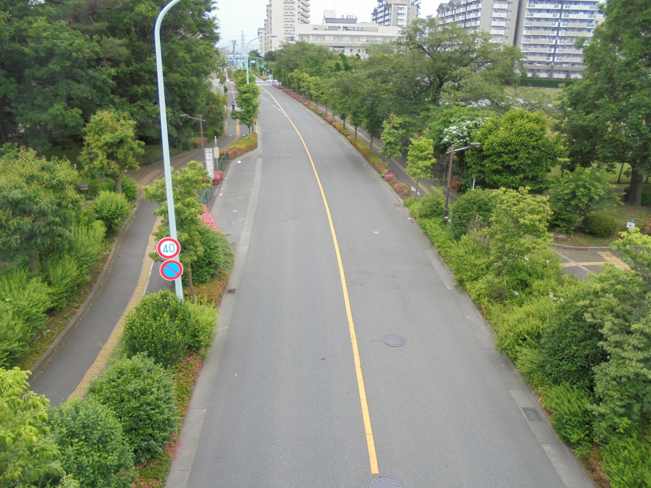 - 朝はウォーキングなどの人が多い
