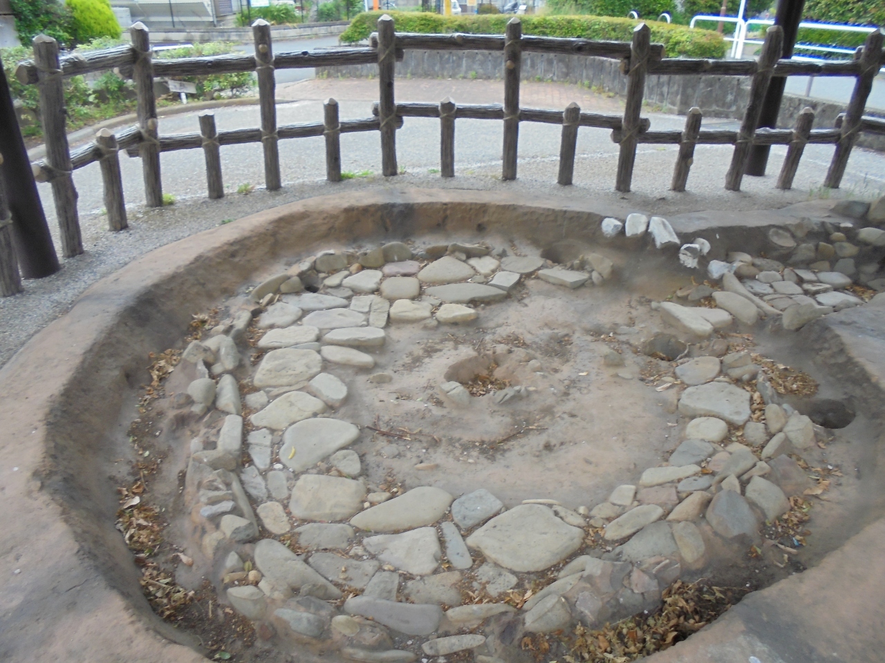 脇にある解説によれば、近隣の集合住宅の建設に先立ち発見された遺跡とのこと。約4000年前の縄文時代中期後半に使われた住居跡を発掘したときの状態で移し替えたそうです。
