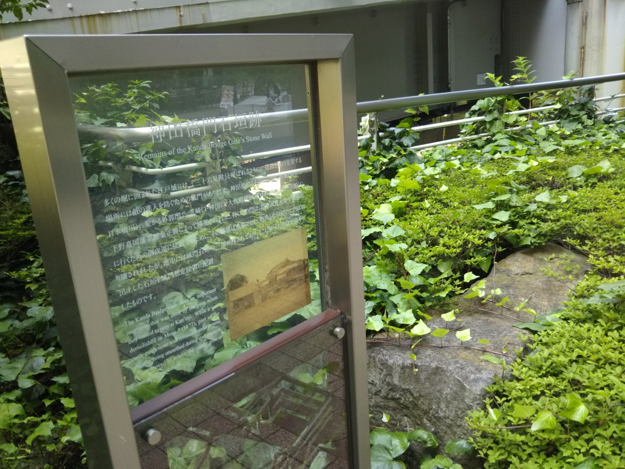 解説によれば神田橋門は将軍が上野寛永寺や日光東照宮に行くための御成道に位置し、その警備は重要だったとのこと。現在見ることができる石垣は地中から出土した一部を想定位置に配置したそうです。