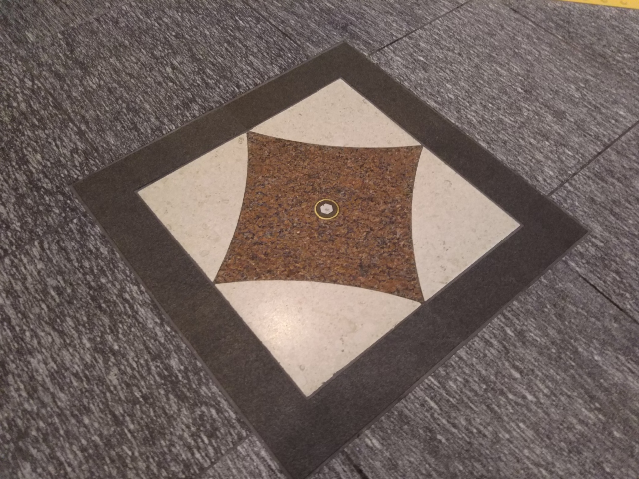壁には事件の概略を記したプレートが掲げられ、床には小さな○形の印がありすぐに特定できます。
