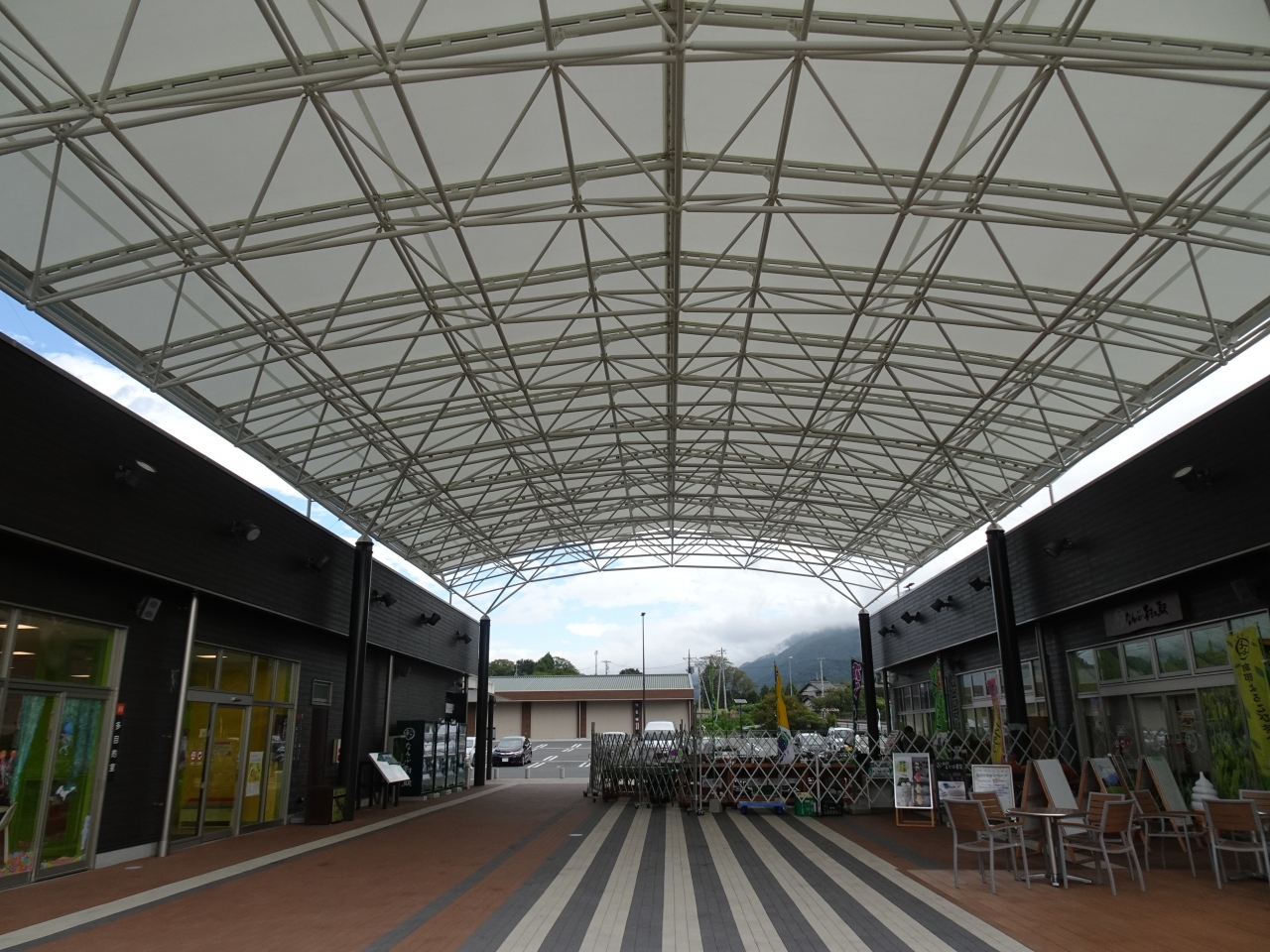 大屋根が跨ぎ雨でも困らない広場や休憩所、キッズルームなど施設の充実度は全般的に高め。