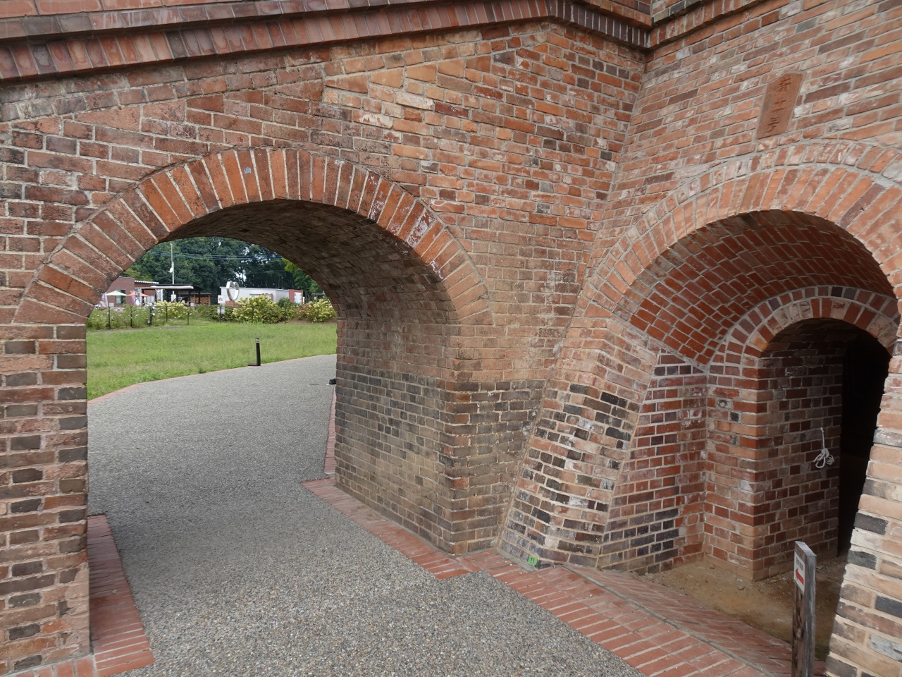 こちらの最大の見どころは「野木町煉瓦窯」。明治23年に下野煉瓦製造会社の煉瓦窯として造られた施設が保存・展示されています。「ホフマン」というのは窯を考案したドイツ人技師の名前。日本では現在4基の遺構が残るホフマン窯の一つです。